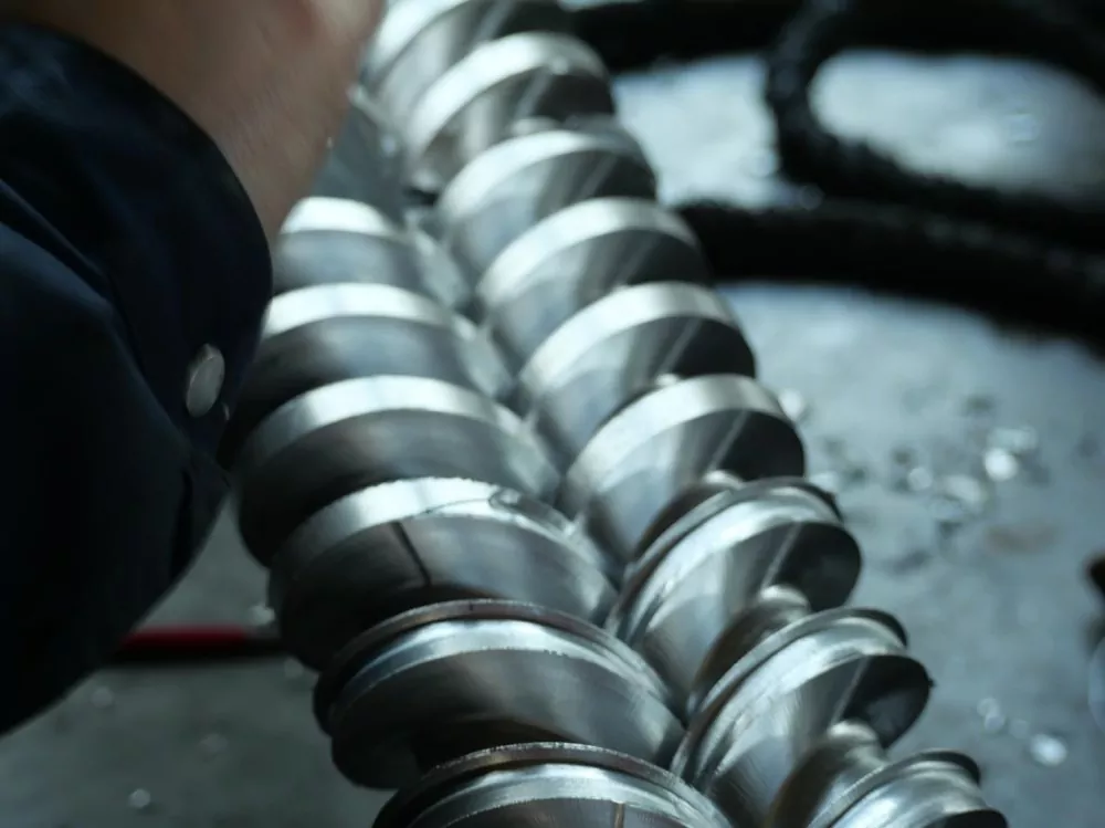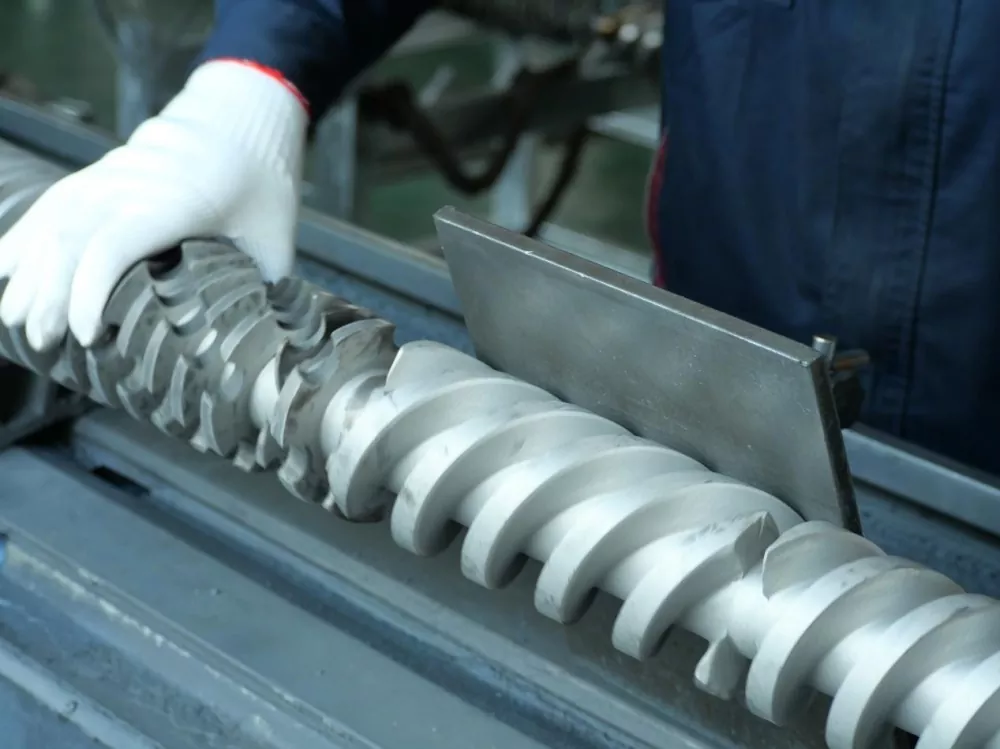Materialevalg er også afgørende. Vores skruer er lavet af højkvalitets 38CrMoALA nitreret legeret stål. Dette gennemgår en syv dages bratkølings- og nitreringsbehandling, hvilket resulterer i et 0,50-0,70 mm tykt nitreret lag og en overfladehårdhed på HV950-1050. Disse materialeegenskaber sikrer fremragende slidstyrke selv ved temperaturer omkring 200°C, hvilket forlænger skruens levetid med mindst en femtedel sammenlignet med konventionelle produkter. Dette forhindrer materialeopbygning i døde hjørner på grund af overfladeslid ved længere tids brug.
